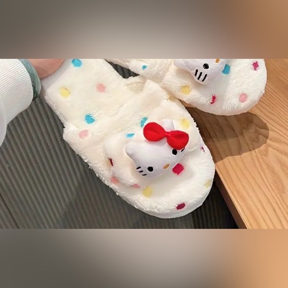Sanrio Hello Kitty Plush Slippers for Women - Cozy & Warm, Soft Fleece Lining, Non-Slip Rubber Sole, Perfect for All Seasons