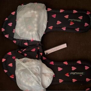 Beautiful black and pink polka dot slippers nwt size 9/10