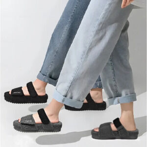 Stay cozy and stylish with these Oncai women's slippers in black. Perfect for a relaxing evening at home, these slip-on slippers are made of faux sherpa for a soft and warm feel. The slipper is designed with a US shoe size of 8 and features a slipper style, making it easy to wear and take off.