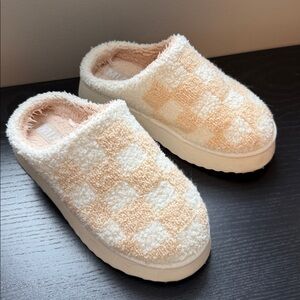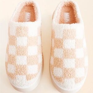 Cozy pink checkered slippers Buckle- Mia Size 7