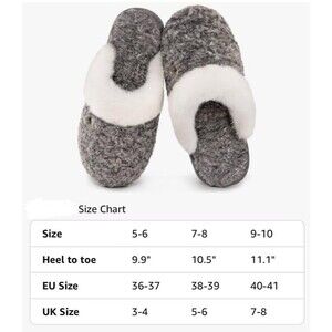 Slippers Cute Memory Foam Fuzzy House Bedroom Womens 7-8 Grey Comfy Cozy