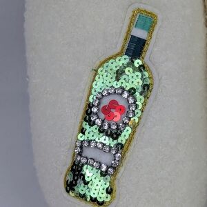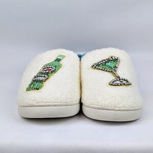Slippers & Headband Martini Bottle Sherpa Embroidery Sequins Ivory L (9/10) NWT
