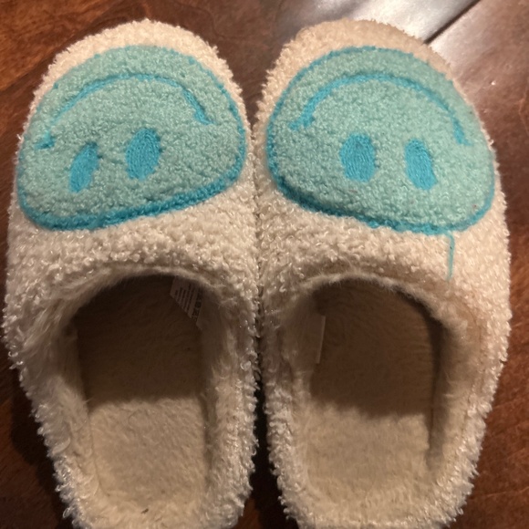 Slippers with happy faces on them. Gently used. Around the house slippers.