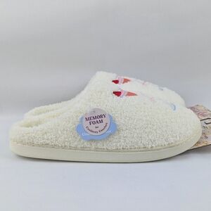 Slippers Strawberry Cosmopolitan Embroider Fleece Memory Foam Slip On M(7/8) NWT
