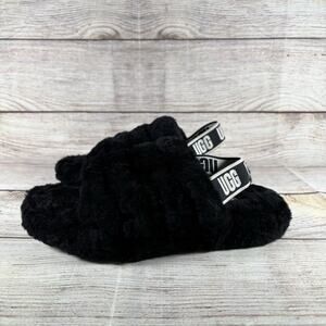 Slippers UGG Fluff Yeah Slide Slipper Sandals Youth US Size 2 1098494k Black. Insoles have discoloration and are flattened. Please see all pictures for reference and condition.