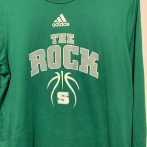 Slippery Rock The Rock Size Medium Adidas Creator Tee Long Sleeved T-Shirt. Polyester, 20” armpit to armpit, 28” long.