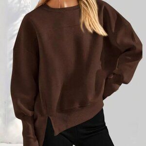 Slit Round Neck Dropped Shoulder Sweatshirt