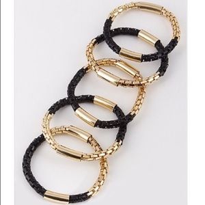 Snakeskin inspired bangles. Colors: Black & Gold; White & Gold.
