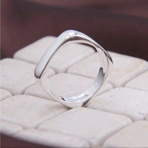 Sliver 925 Sterling Silver Square Circle Ring Size 8