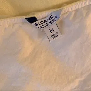 Lemon yellow cotton, one shoulder, white embroidered ruffle sun dress. Excellent condition
