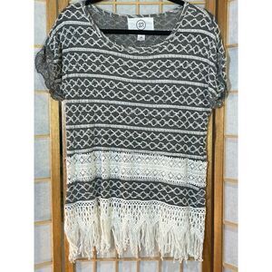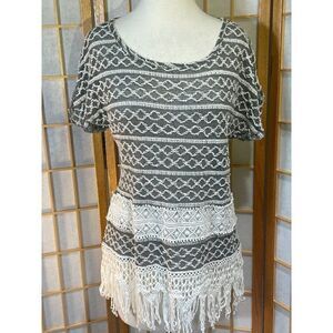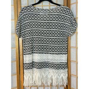 Beautiful and unique Sloane Rouge medium sweater. Embroidered and fringe detail. Lightweight. Semisheer. 50% polyester, 38% cotton, 12% rayon. Hand wash. Made in the USA. Excellent condition. Nonsmoking home.