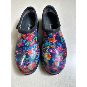 Sloggers Rain Shoes Women's Gardening Rubber Flats Slip On SZ 9 Blue Florals. Removeable insole, in good pre-owned condition. No rips, tears, snags, pulls or stains.