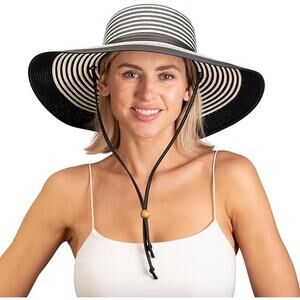 Sloggers Women's Size 22.5 Medium Braided Sun Hat Wide Brim Wind Lanyard UPF 50+ Packable Beach Travel Holiday 65% Paper, 35% Polyester Vacation Cruise