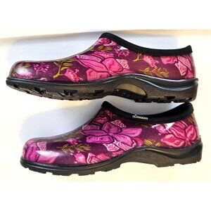 Sloggers Womens Size 10 Waterproof Garden Clogs Purple Floral Print Made In USA