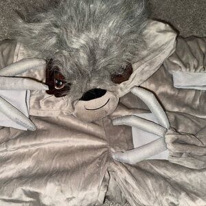 Fun gray animal onesie with hood. Perfect for parties or lounging.