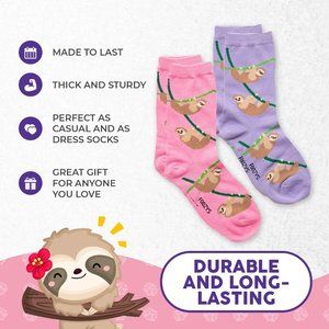 Sloth Hanging Slow Lazy Rainforest Tree Animal 2 Pairs Foozys Women's Socks