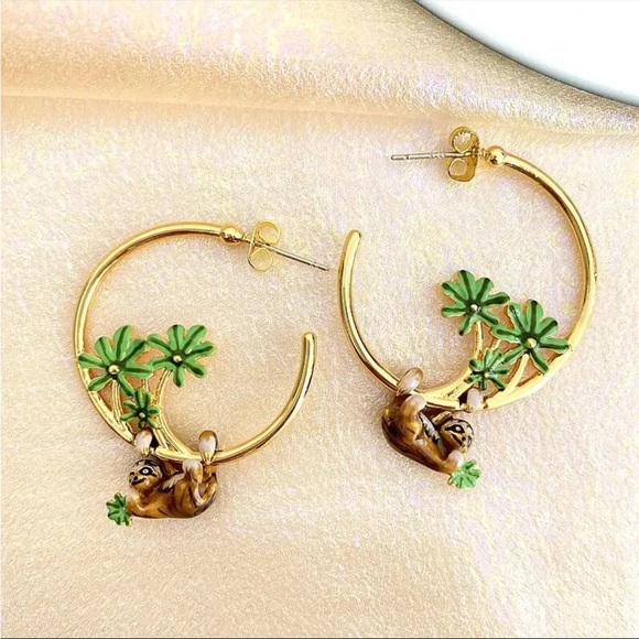 So cute!! Love these fabulous detailed sloth 🦥 hoop earrings Gold hoops NWOT