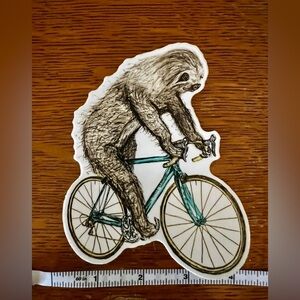 Unique sticker featuring a sloth riding a bicycle. Perfect for decorating, vehicles, bikes, laptops or notebooks. Eye-catching design with teal and brown colors.