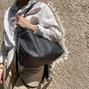 Slouchy Black Faux-Leather Shoulder Bag + Removable Adjustable Crossbody Strap