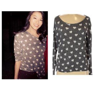 Cute and comfy sweater with heart-shaped print. Loose fit with scoop neckline. Material is super soft, lightweight & breathable.