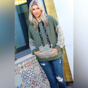 Slouchy Olive Hacci Corded Vintage Chevron Hoodie