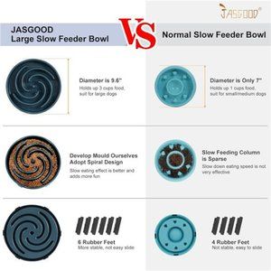 🧿🐶 REDUCE SLIP BOTTOM 🐶--- There are 6 reduce-slip mats in the package that can be glued to the bottom of the bowl to prevent the bowl from slipping. The slow feeder dog bowl base widened to prevent being knocked over by pets, the bottom six sides are attached with reduce-skid pads to help keep it in place!