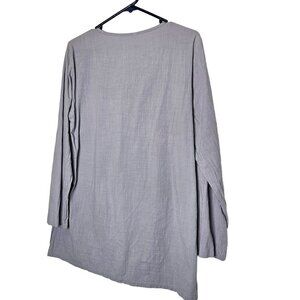 Slowcolin Women's Tunic Cotton/Polyester Light Bluish Gray Long Sleeve Button L