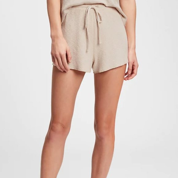 Slub Ribbed Shorts Slub ribbed jersey knit. Elasticized waist with drawcord ties.