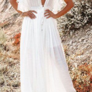 Slubbed fabric Sexy Deep V Neck Beach Cover up dress adjustable Loose Bikinis Cover ups Swim Cover up Robe Plage Beachwear