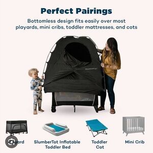 SlumberPod portable privacy pod for easy and restful travel with a child. Features a black out design, bottomless, and ventilation panels. This was used under 10 times, but I LOVED it!