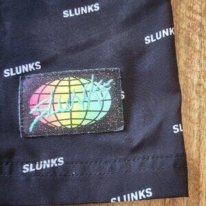 Slunks Shorts Mens XL Black Recycled Polyester Lined Swim Trunks Quotes Athletic