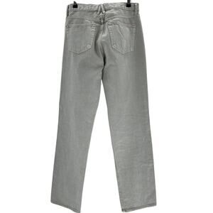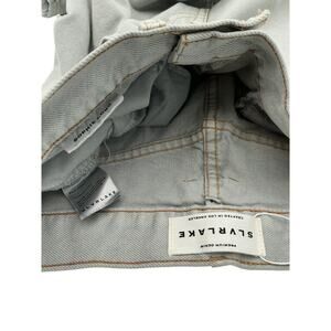 Slvrlake 'Sophie' Blue Cotton Long Denim Jean Size 28: mid-weight, non-stretch denim, fading and whiskering, worn edges, full length, button closure and zip fly, 5-pocket styling, measurements: 15 inch width x 33 inch length.