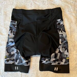Stylish cycling shorts with a modern camo pattern. Comfortable fit for long rides. Features Slyke branding.