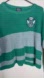 Stylish green and gray women's sweater with a unique emblem. Perfect for adding a touch of elegance to your wardrobe.