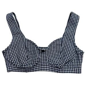 Sm Y2K VTG LA Movers Gingham Bralette Top Blue White Rockabilly Pinup Coquette