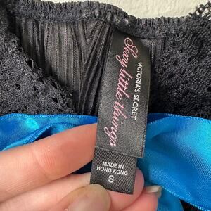 Sm Y2K VTG Victorias Secret Black Sheer Lace Babydoll Slip Dress Cami Bow Fairy