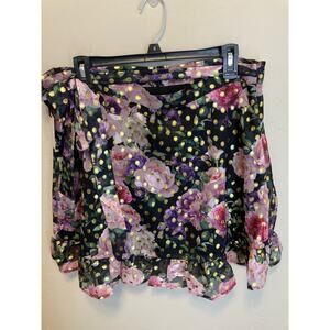 Smak Parlor Floral Gold Polka Dot True Wrap Ruffle Skirt NEW Size Large