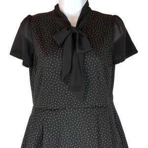 Smak Parlour Black Polka Dot Dress With Bow Tie Neck Size Medium Fit Flair