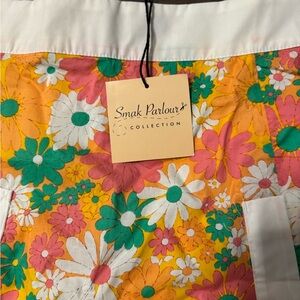 Brighten your wardrobe with the Floral Skirt. Featuring vibrant orange and green hues, this skirt is perfect for any occasion.