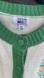 Smiley cardigan with floral embroidery. Features green accents and buttons.
