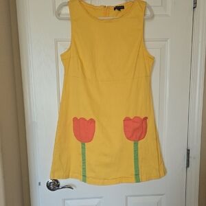 This fun, casual BOLD tank dress features a vibrant yellow hue with a sleeveless design and a classic crew neck. Its A-line silhouette offers a relaxed fit, perfect for sunny days. Vibrants tulip pocket accents add a touch of fun retro charm to this lightweight, breezy dress.