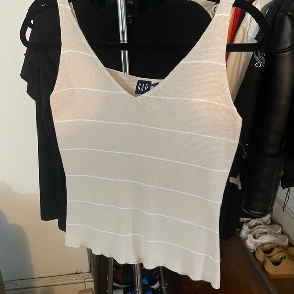 GAP tan and white v-neck knit tank top.
