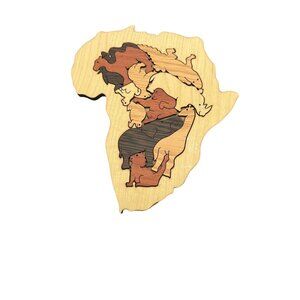 Small 12 Piece Wooden Puzzle Of Africa With Animal Shaped Pieces, 7" X 8"