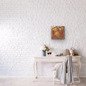 Small 12x12 Textured Pink Rose Gold & GoldAbstract Painting On Canvas Mixed Media wall Art Artwork