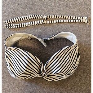 Very flattering, true-to-size 34D bikini top from H & M. Can wear the adjustable straps regular or criss-cross, and you can remove them to make it a bandeau. Back band is also adjustable.