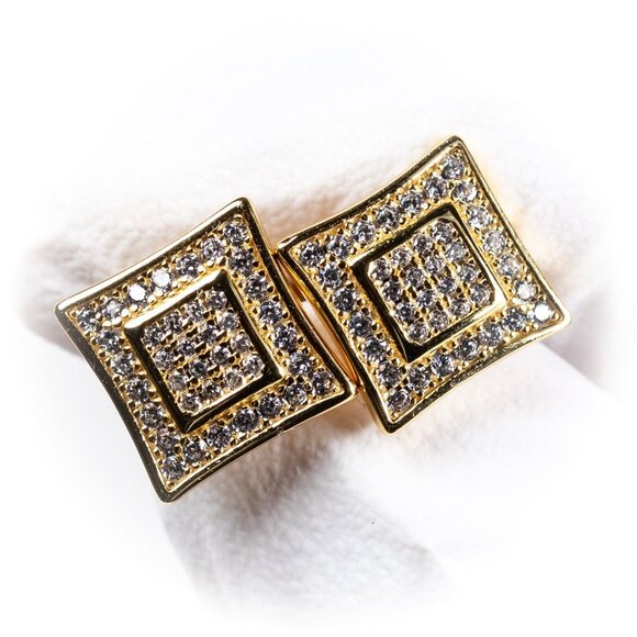 . Iced Cz small square 14k Yellow 925 Sterling Silver Cluster Earrings Men women: Our medium everyday size are size 10mm.
