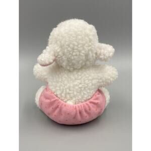 Small 5” Baby Lamb Sheep W/ Pink Diaper Plush In 7” Cloth Egg Shaped W/ Bow