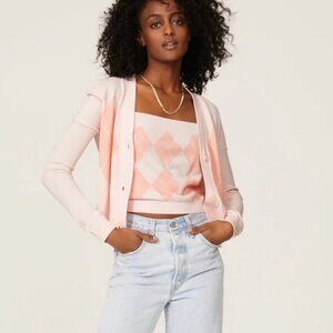 Small - 525 America - Pink Argyle Cardigan Rent the Runway $138 msrp