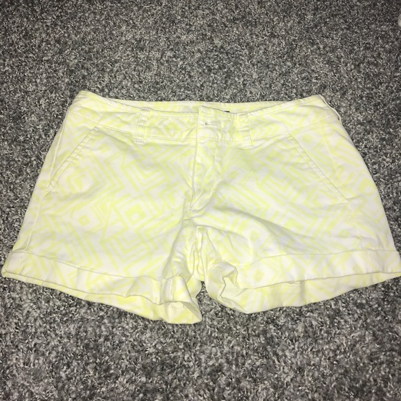 American eagle midi shorts with Aztec print. Bright yellow and white. Barley worn