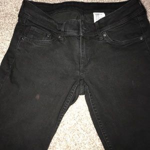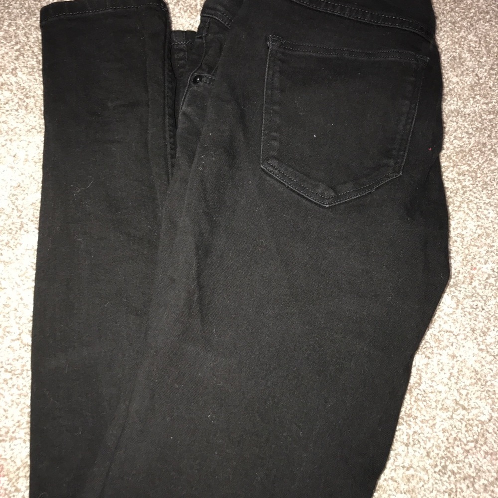 Low waist, kind of stretchy. Worn about twice. Btw that red spot on the jeans is just the glare on camera